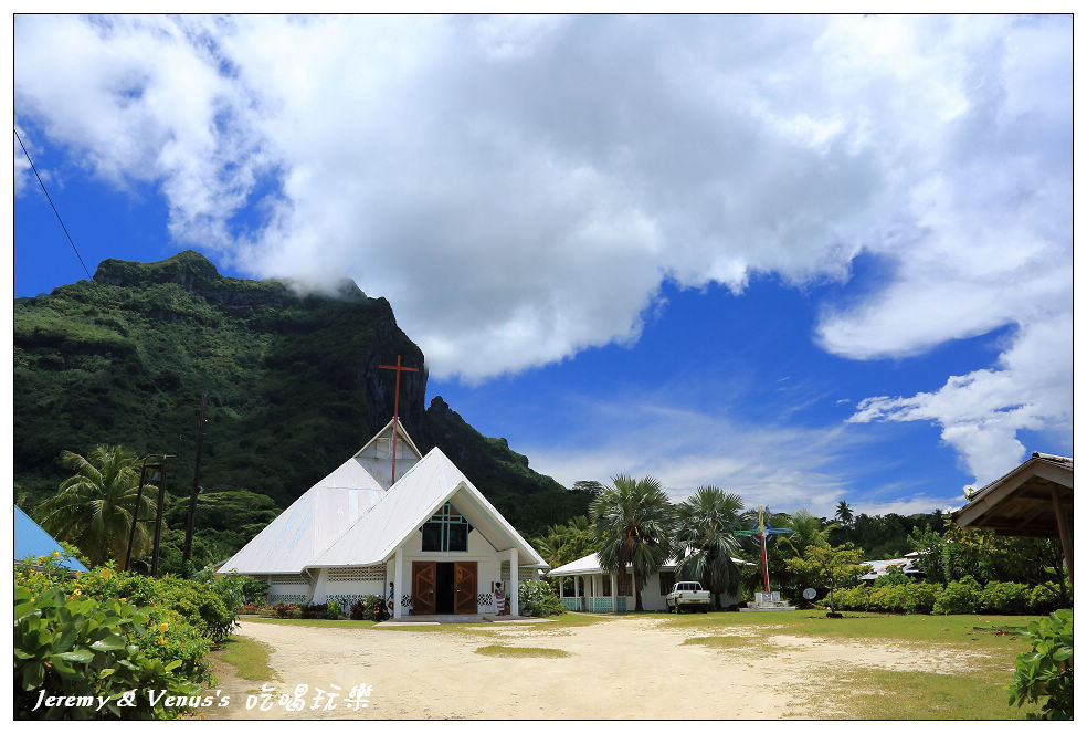 後面就是Mt.Otemanu,從不同角度看山頭,形狀是不一樣的,怎麼有點像小惡魔頭上的兩隻角?