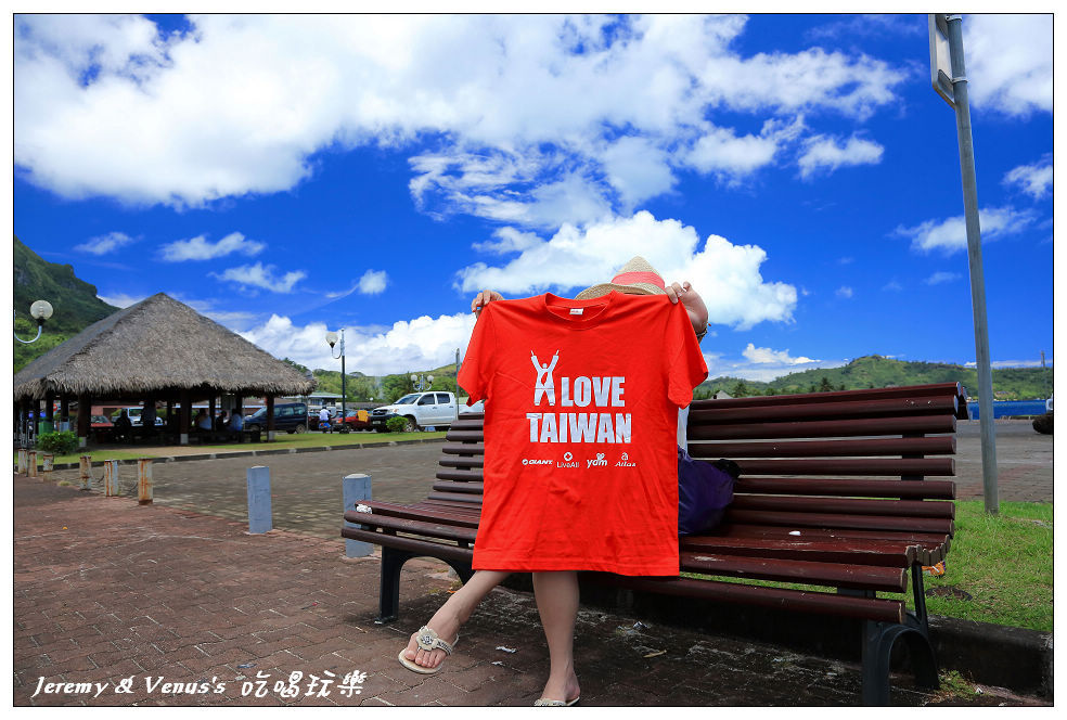 在遙遠地球的另一端愛台灣,帶著蕃薯藤提供的T恤,在大溪地愛台灣