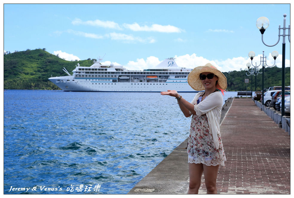 碼頭外,保羅高更號就停留在外海處,這是一艘航行於法屬波里尼西亞的豪華郵輪,穿梭在大溪地各島嶼之間,等於就是移動的飯店啦,如果不想住飯店的,可以考慮住保羅高更號