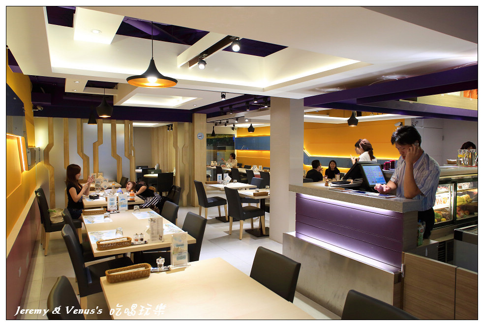 明亮乾淨的環境,餐廳內大多採用白色調的裝潢,我個人真的不喜歡太昏暗的餐廳(好啦,我很沒氣氛沒情調可以吧?),實際上是.........太暗不好拍照!