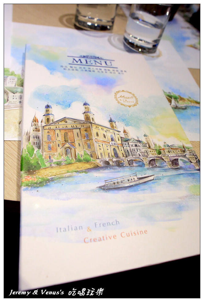 菜單封面的畫作好漂亮,雖然我不知道那是哪裡,充滿歐式風情,用餐墊的餐紙也是這張畫,想起西班牙巴塞隆納的四隻貓餐廳,也是用畢卡索的名畫當餐墊紙