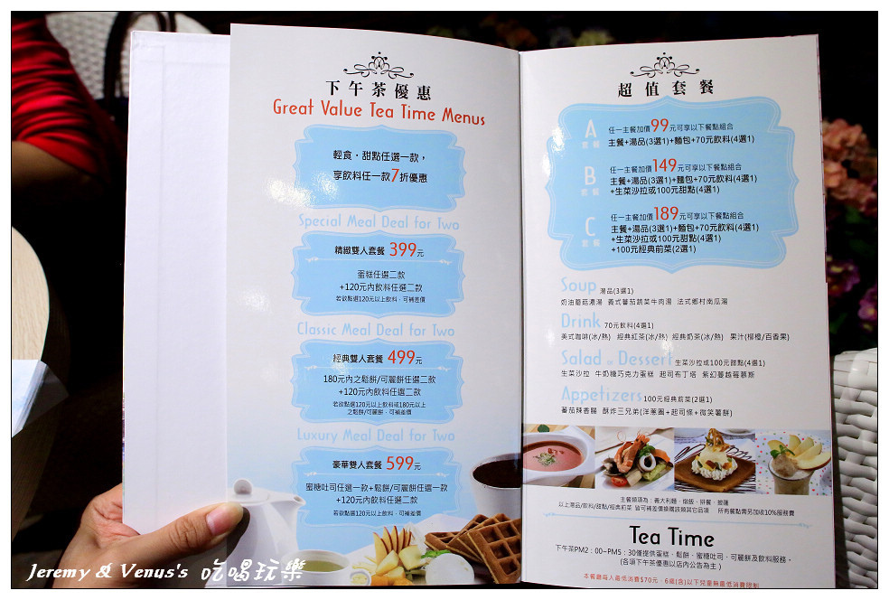 下午茶優惠價,最便宜兩人只要399,另有多種套餐組合,依個人需求自由配。