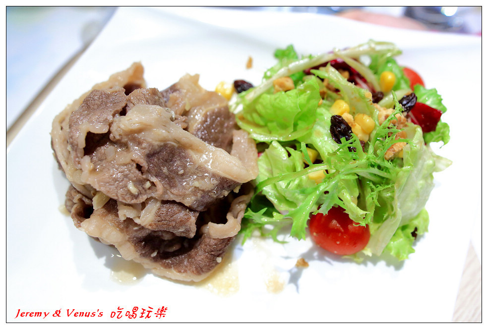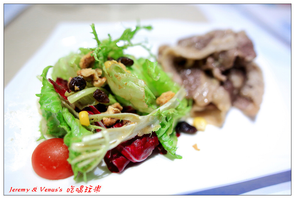 光這生菜沙拉佐和風醬汁,看起來就非常吸引人了,吃起來更是爽口,和風醬可是我最愛的沙拉醬汁