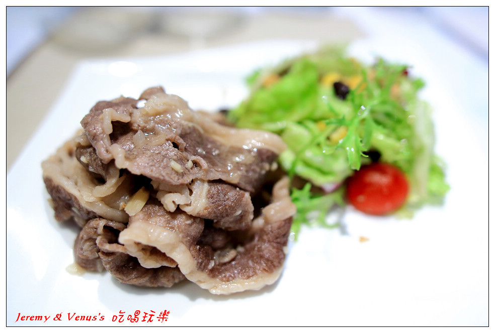 雪花牛肉片,本身就非常美味,再加上蒜頭、些許辣椒一起煎,微辣的牛肉好滋味,個人非常喜歡。