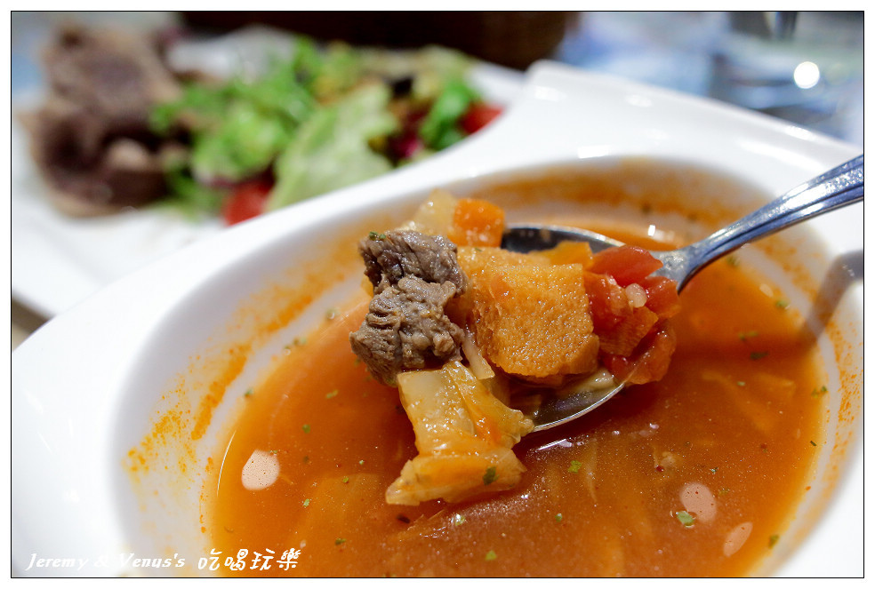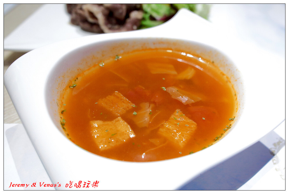 捨棄西餐常喝到的重口味湯頭,改走清淡路線,蕃茄不會過酸,蔬菜味不會太重,牛肉也不會太腥,所有食材搭配的剛剛好。