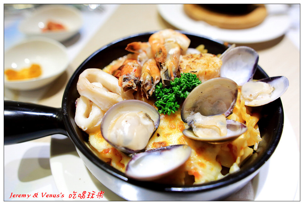 這燉飯的米粒,真的是下盡功夫,米心煮的不像義大利那樣硬到像是沒熟似的,也不像台灣軟爛到像是吃稀飯一樣,這頓飯的米不軟不硬,咬下去還有點脆脆的口感,該怎麼形容呢?就像是泡過水濕掉後的米香那樣,很難形容啦。