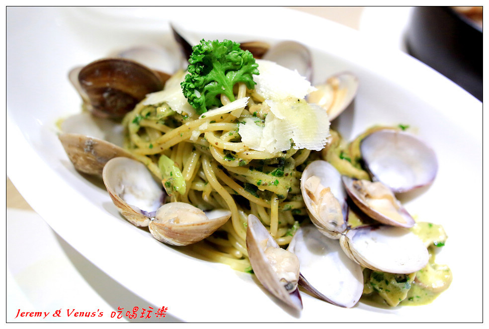 最簡單的一道,也是最能比較出優劣的一道,青醬打的十分濃稠,味道夠重,不似坊間一般義大利麵店水加很多都沒味道,這盤很夠水準。