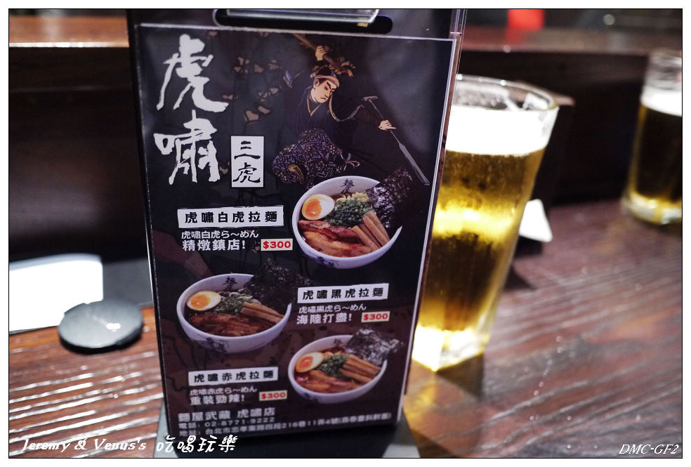 來看看菜單吧,麵屋武藏每家店的拉麵都有其獨特的口味,因此選擇也不一樣,虎嘯店有白虎、黑虎、赤虎三種湯頭口味,再加上沾麵及咖哩拉麵
