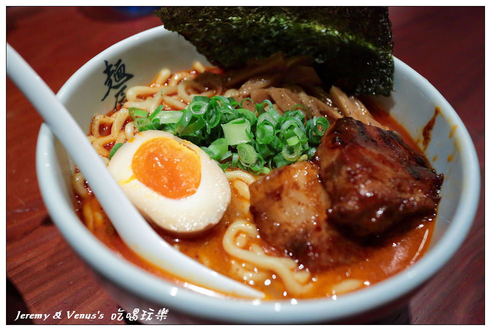 比起赤虎拉麵,虎嘯赤虎拉麵多了半顆蛋跟一片叉燒肉