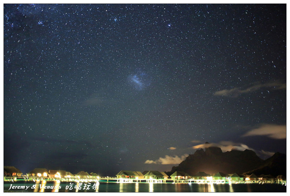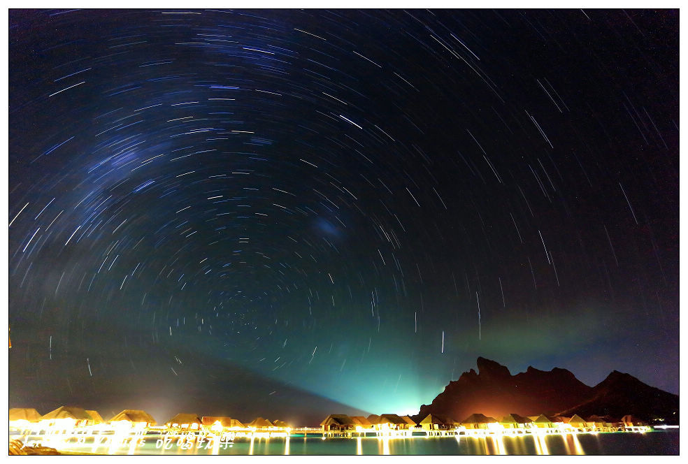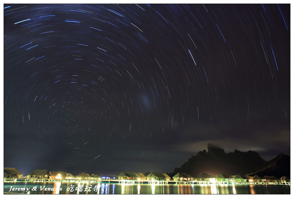 星空星軌很多人都會拍,但這Bora Bora的星軌應該是絕無僅有的照片吧,一來去大溪地的人少,二來就算去了也不會放任美好的夜晚不在房間裡還跑到外面來拍照的吧?好了,不多說,來看看這難得一見的景象吧~