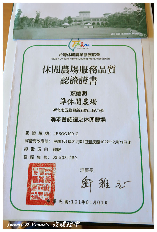 合法休閒農場證書,是大台北地區唯一一家位於都會區內且交通最為便利的休閒農場