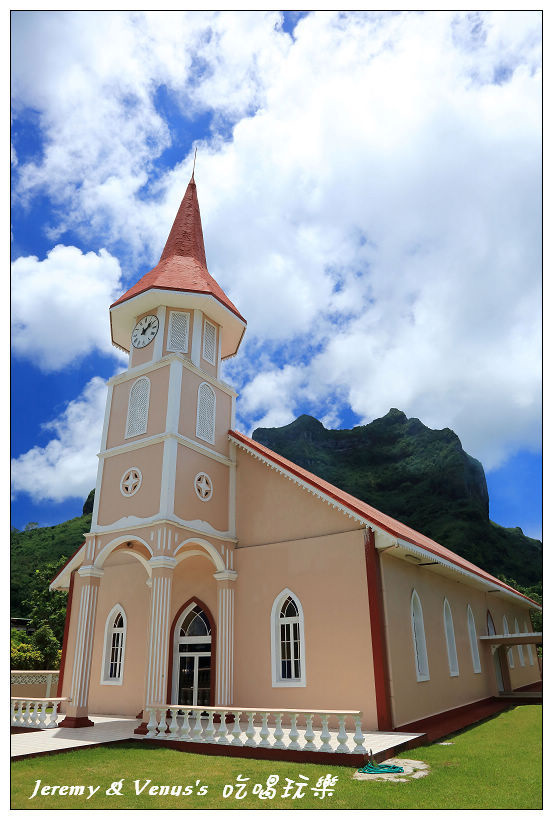 後面就是Mt.Otemanu,從不同角度看山頭,形狀是不一樣的,怎麼有點像小惡魔頭上的兩隻角?