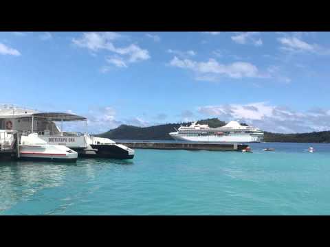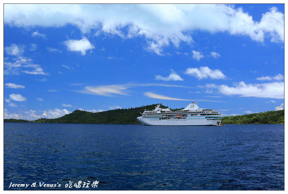 碼頭外,保羅高更號就停留在外海處,這是一艘航行於法屬波里尼西亞的豪華郵輪,穿梭在大溪地各島嶼之間,等於就是移動的飯店啦,如果不想住飯店的,可以考慮住保羅高更號
