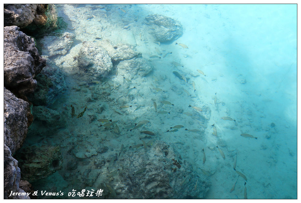 水裡的魚不少,可惜的是因為是新開發的飯店,水裡都沒有礁石,因此不會有色彩繽紛的熱帶魚