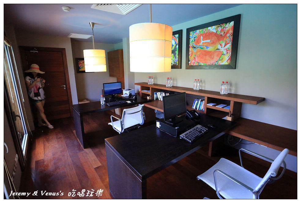 大廳旁邊有一間商務中心,裡頭有兩台可上網的電腦,因為房間上網需收費,所以我們都是靠這邊的電腦來上網,另外還有DVD跟書可以借,當然書都是外文的,DVD可能都沒有中文字幕,至少我們借了一部飢餓遊戲是沒有中文字幕的,最重要的一點,這裡還有瓶裝礦泉水無限量供應,雖然房間裡清潔時會補充,要是喝不夠或是不在房間裡都可以來這邊拿