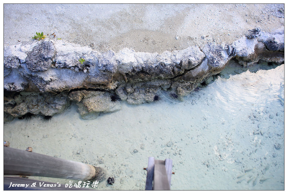 不過這邊水上屋的水深似乎比較淺,應該是我們的房間比較尾端,靠外海當然比較深,有顧慮的在訂房時可以註明一下
