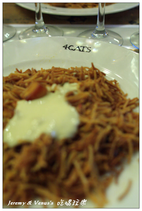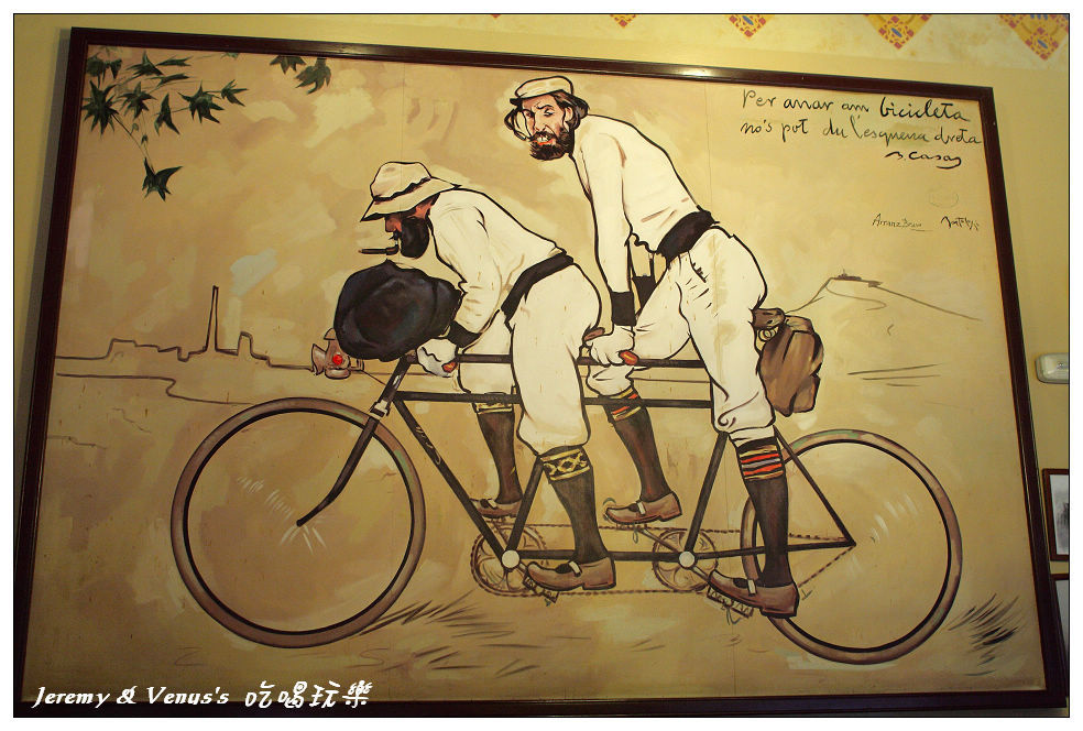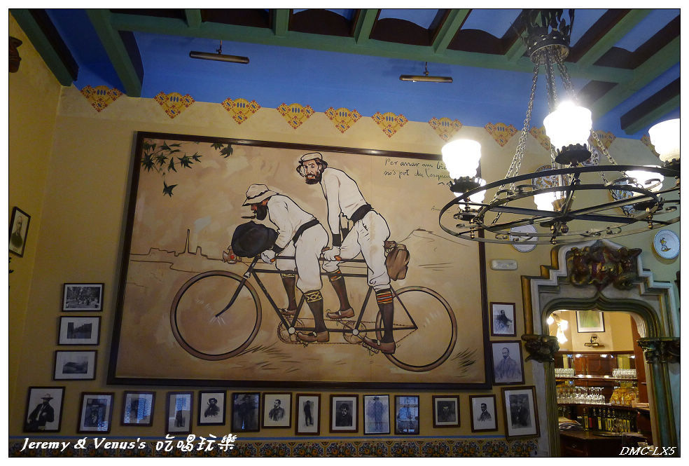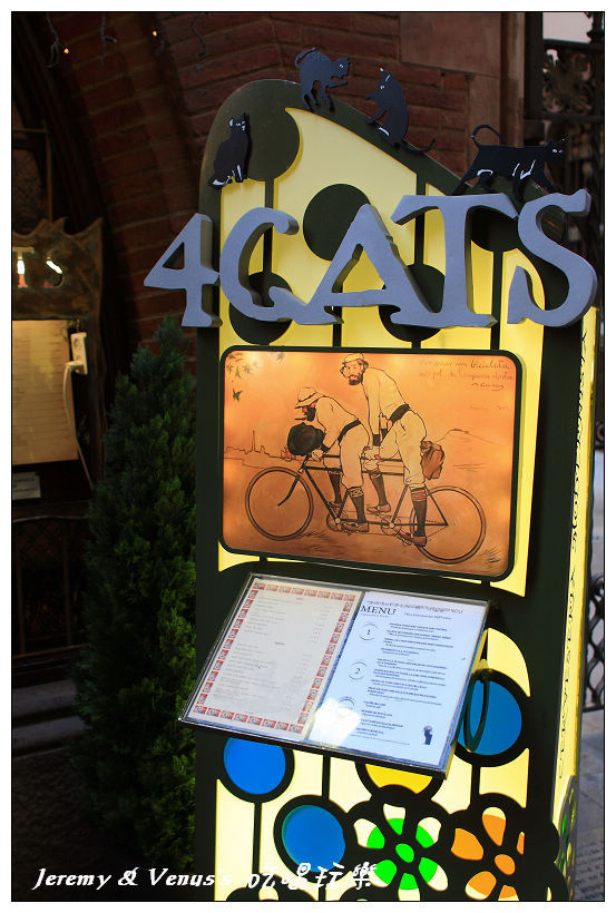 再接再厲,離開桂爾公園,我們來到巴塞隆納市中心的蘭布拉斯大道,這是血拼逛街最主要的戰場,不過還沒到血拼的時候,先來去填飽肚子,今天的午餐是四隻貓餐廳,這是巴塞隆納相當有名的餐廳,是畢卡索年輕時常去的咖啡店,也是巴塞隆納藝術家聚集的地方,餐廳的第一份菜單就是由畢卡索設計的,即使現在,店內也是掛滿畢卡索的畫作。