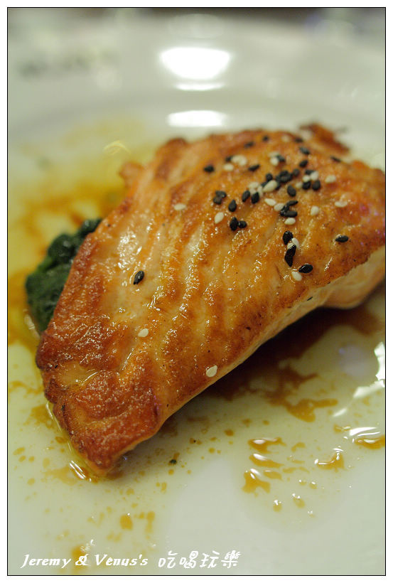 主餐是煎鮭魚,這不是應該是配菜嗎?應該跟剛剛的炒麵一起吃的