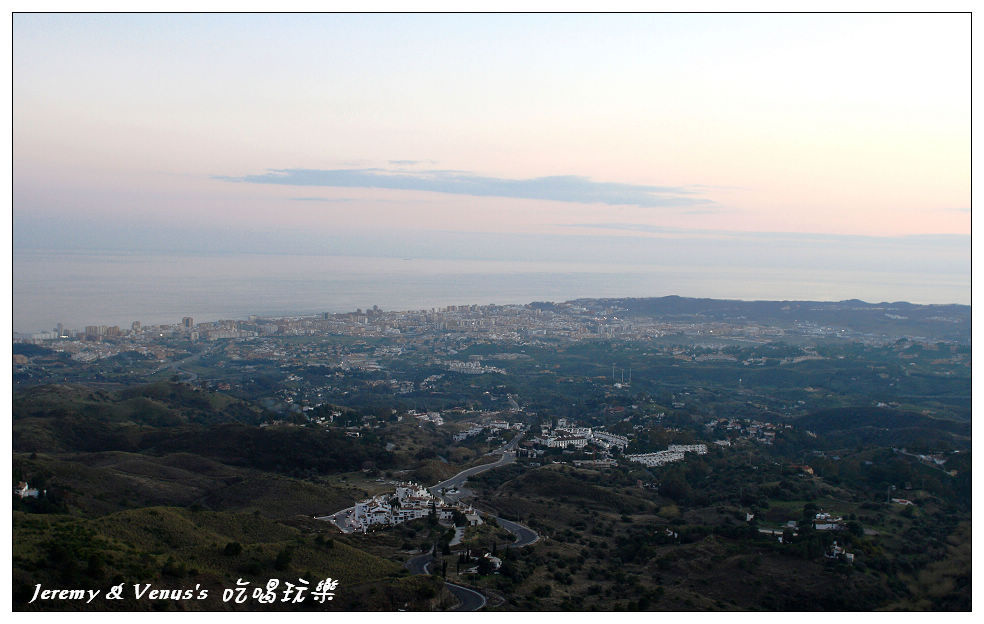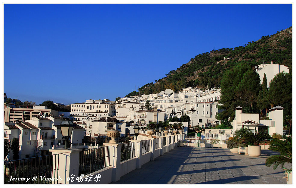 傍晚,我們來到西班牙最南端,安達魯西亞區,地中海沿岸的太陽海岸,因緊鄰地中海,使得氣候一年四季皆宜人,沿地中海有許多美麗的海邊小鎮,後方山坡上也有幾個以白色建築聞名的山城,其中又以米哈斯MIJAS最美,是一個可媲美聖托里尼的白色山城。