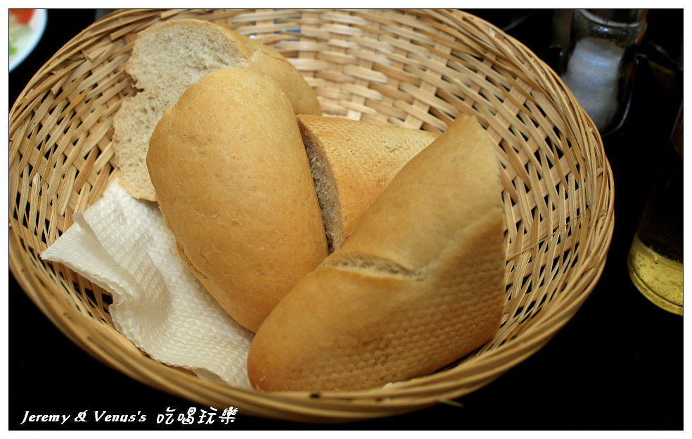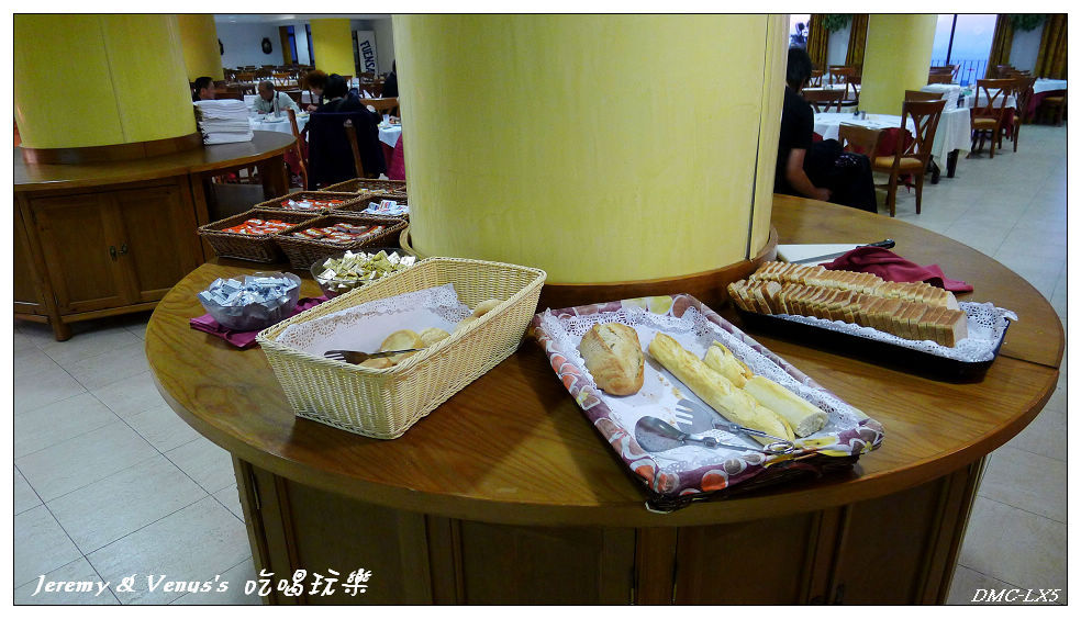 就座後,桌上一樣有麵包,說真的,這趟旅程餐廳的麵包都很差,感覺就像大買場裡賣的一樣