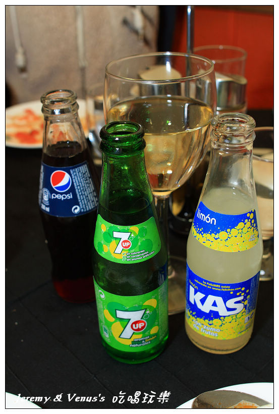 ㄜ,每人又可以點一瓶飲料,果汁汽水啤酒都行,這幾天每餐都喝酒,改喝汽水好了,怎麼還是有一杯白酒咧?