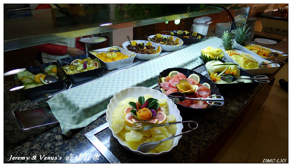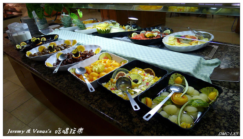 水果,種類很多,不過要小心,有些是罐頭水果,這邊的葡萄柚、柳橙都是現切的