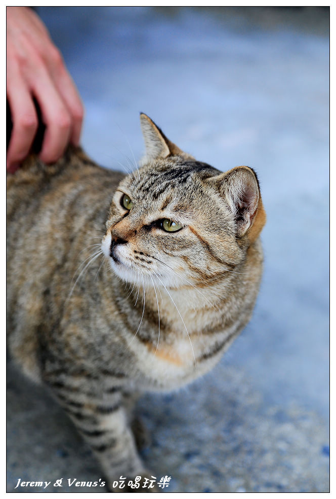其實有個小訣竅,你只要拿著一個瓶子裝著貓飼料,搖一搖,貓咪聽到自然就會圍著你了,但拜託一下,這裡的貓不愁吃穿,不可能會餓死的,而且貓咪對吃很沒有節制,雖然沒有規定不能餵貓,但請大家盡量少餵食,最多給個兩三粒乾乾當作是親近人的獎勵就好,因為有聽說貓咪吃到撐死的.....