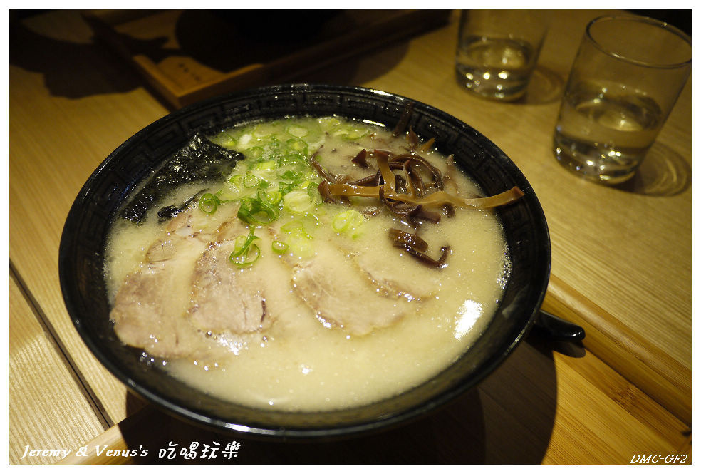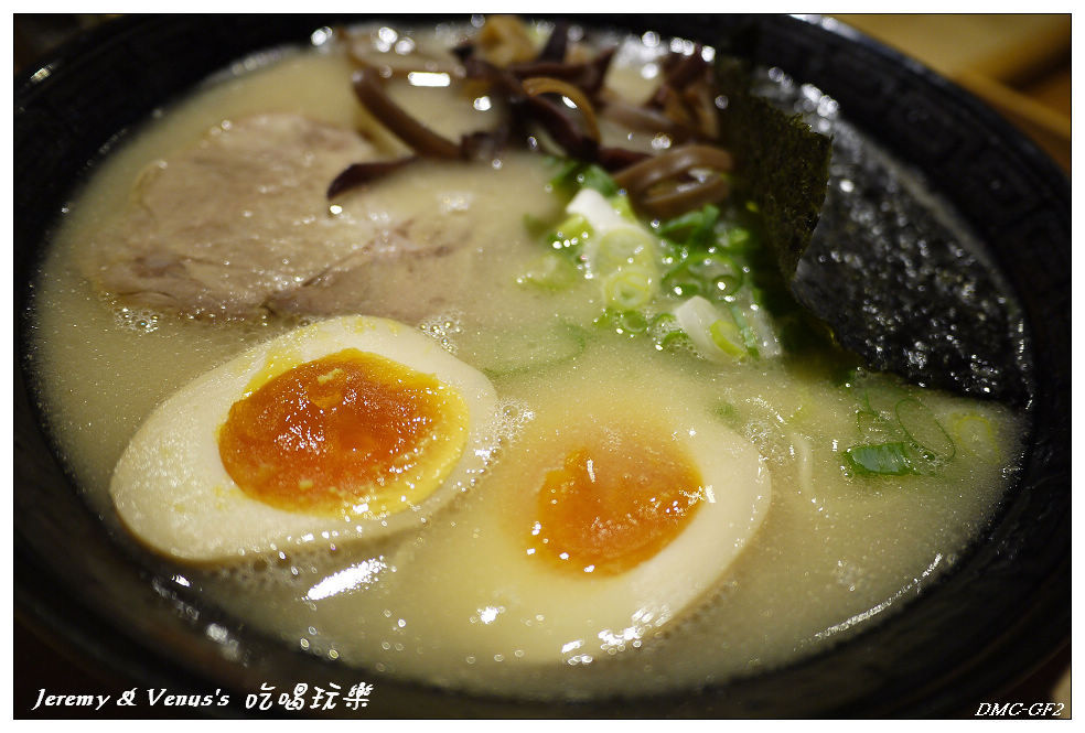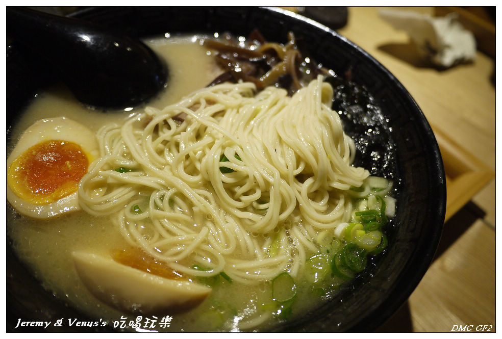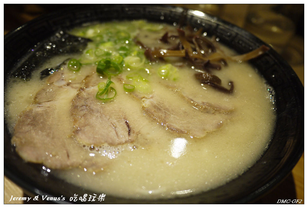好了,最主要的麵條跟湯,麵條屬於極細拉麵,如果不是在拉麵店裡吃的話,我一定會以為那是陽春細麵,不論是口感或味道都像極了,我不愛。湯的部分是很濃稠的豚骨湯,整個豚骨的精華都熬出來了,就好像驥園的雞湯一樣,表面很快就會凝結出一層膠質薄膜,算是不錯的湯頭,不過......我還是不愛