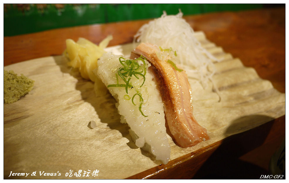 比目鰭邊&鮭魚肚握,炙燒後入口,滿嘴的魚油香