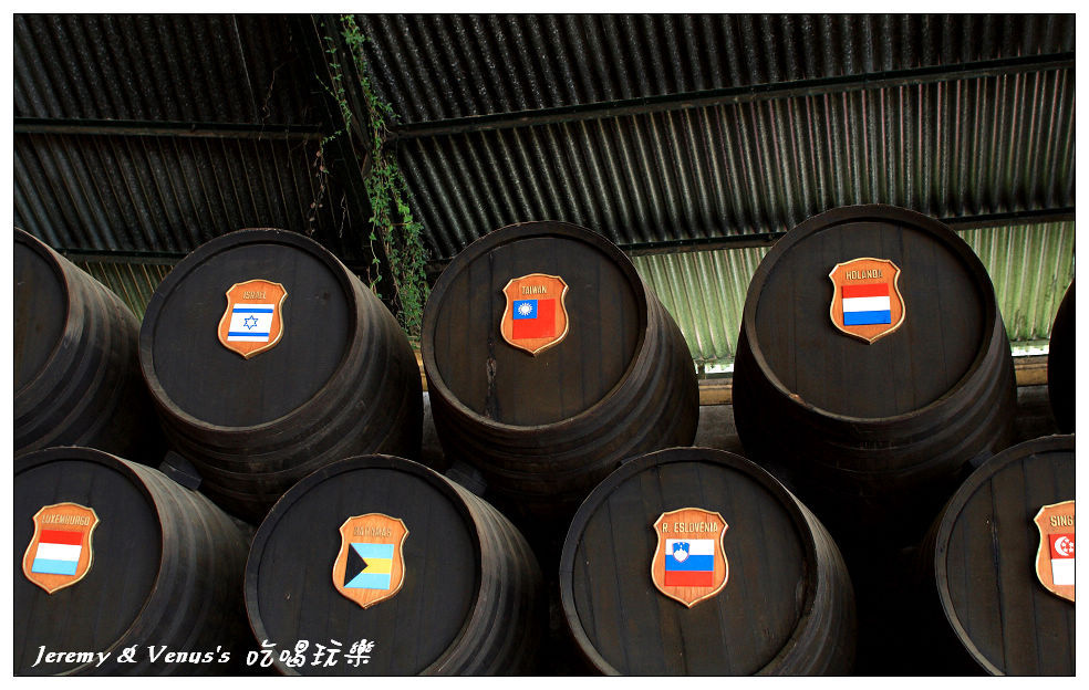 這邊有很多酒桶,每一個酒桶上都標有一個國家的國旗,這裡總共有205個酒桶及205個國旗,也就是說這裡的酒賣給205個國家耶~