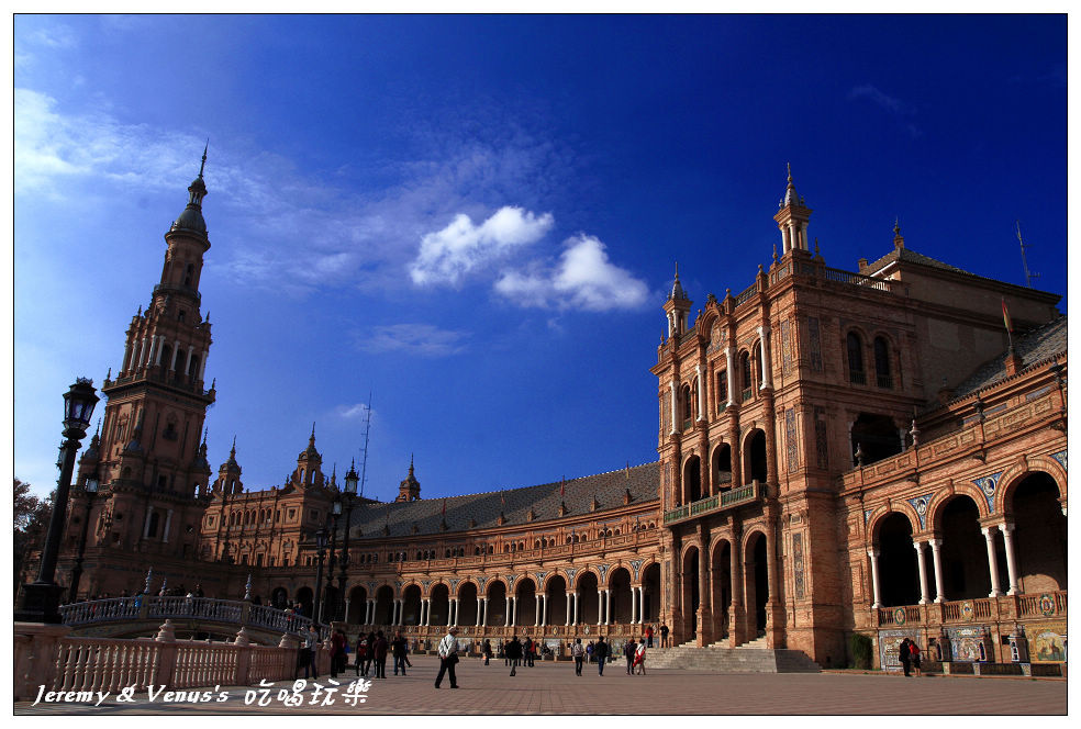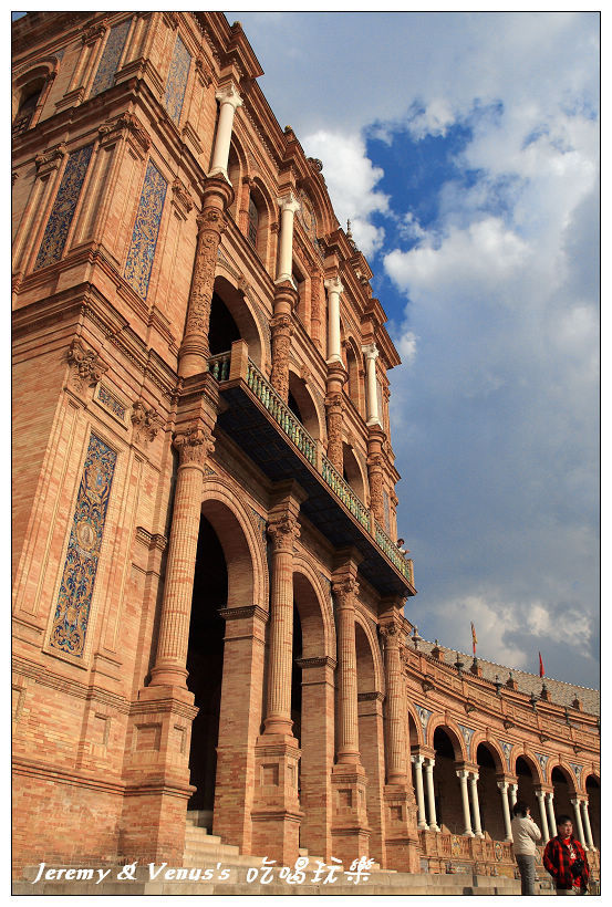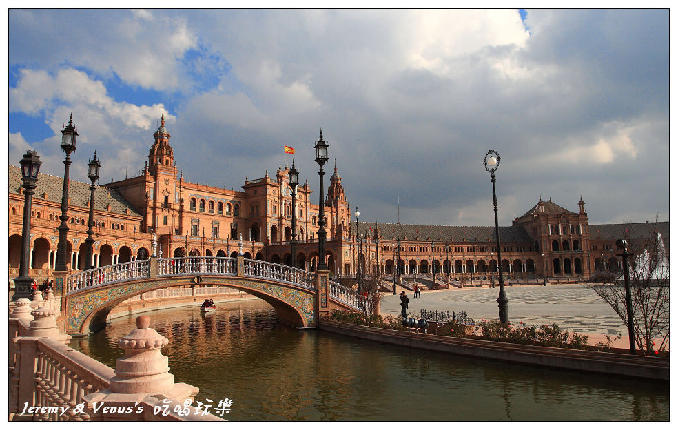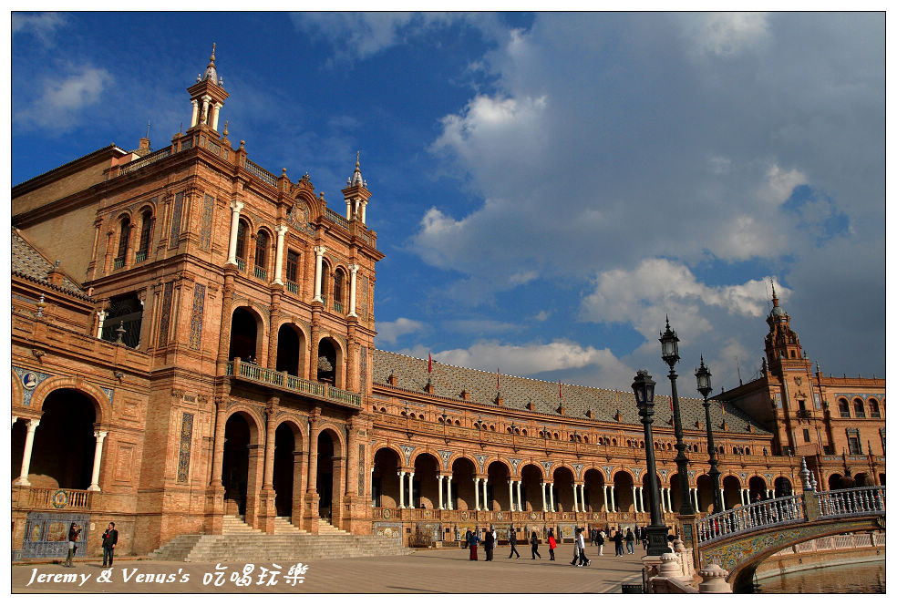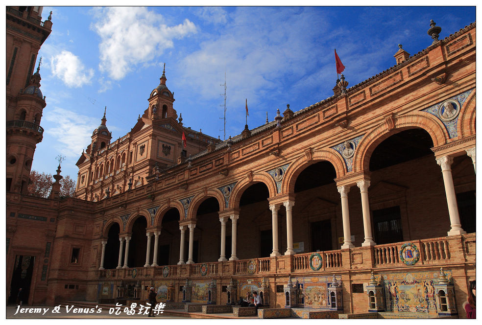 車子開了一個半小時多後抵達了塞維亞,先來到西班牙廣場,又是西班牙廣場.....,塞維亞的西班牙廣場並不是古蹟,其實它建立於1929年,目的是為舉辦博覽會,不過蓋得很漂亮,是整趟西班牙旅程中最有特色最漂亮的西班牙廣場