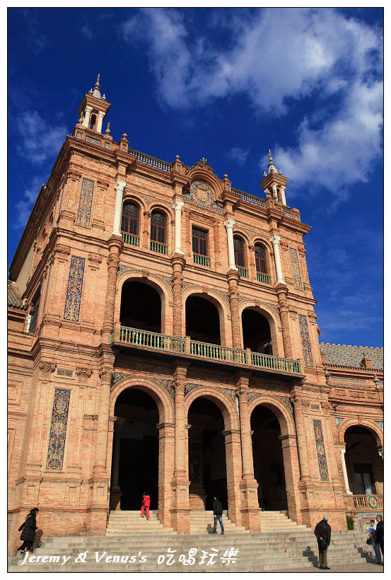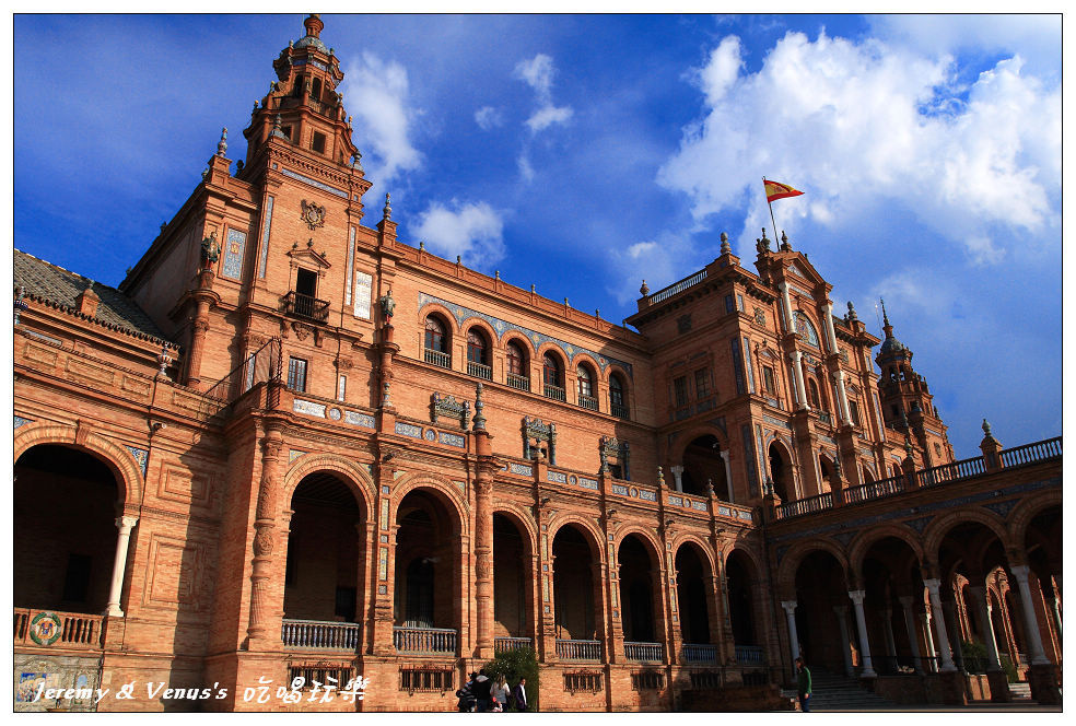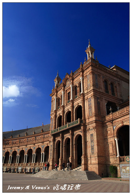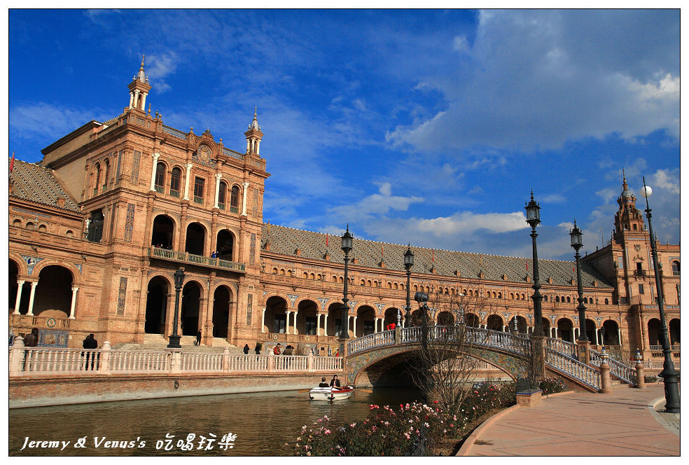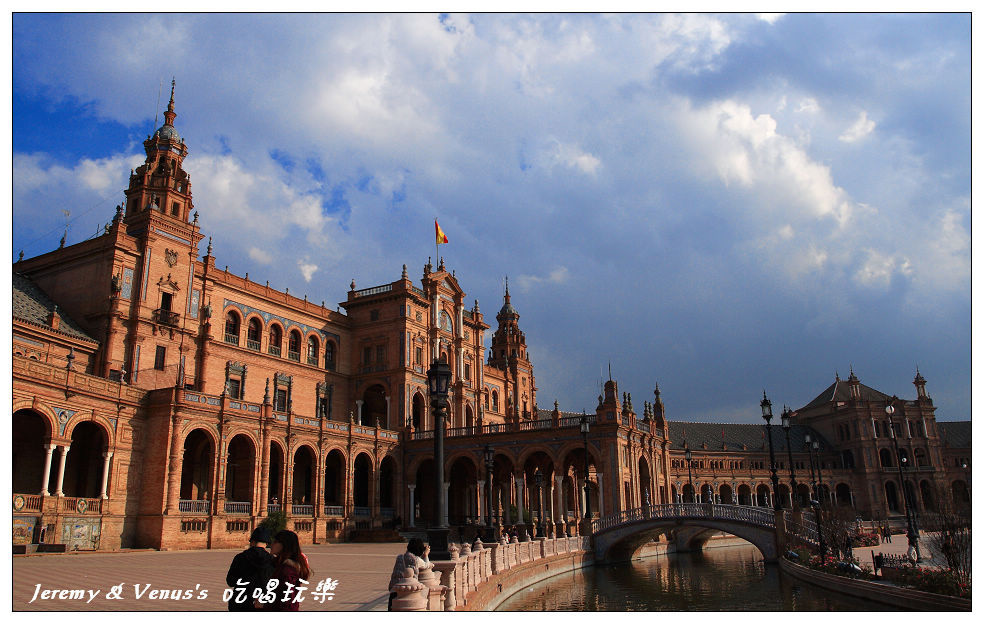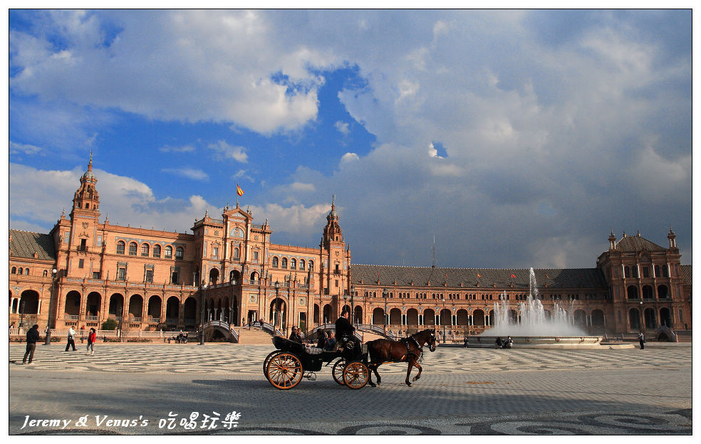 車子開了一個半小時多後抵達了塞維亞,先來到西班牙廣場,又是西班牙廣場.....,塞維亞的西班牙廣場並不是古蹟,其實它建立於1929年,目的是為舉辦博覽會,不過蓋得很漂亮,是整趟西班牙旅程中最有特色最漂亮的西班牙廣場