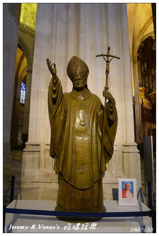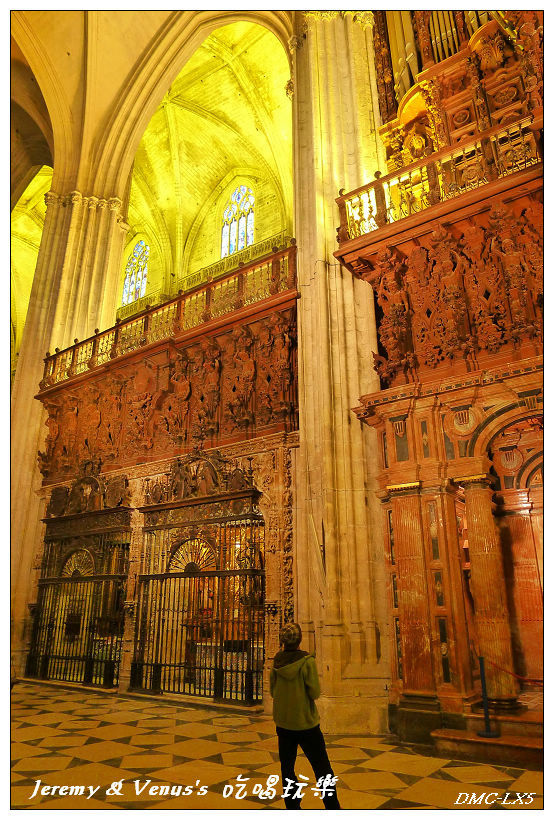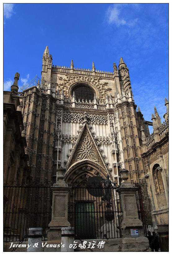 這就是塞維亞大教堂,大教堂與旁邊的希拉達塔是塞維亞最主要的觀光景點,大教堂興建開始在1401年,耗時一世紀,原本是回教的清真寺,後來則改建為天主教的大教堂,根據資料指出,塞維亞大教堂是世界第三大教堂,僅次於梵諦岡聖彼得大教堂及倫敦聖保羅大教堂,同時也是世界第一大的哥德式教堂,疑?之前的托雷多大教堂不是也是號稱西班牙最大的教堂嗎?怪怪~