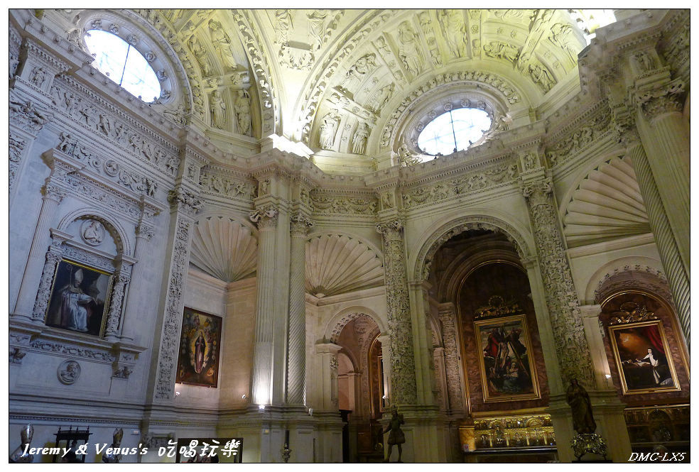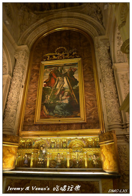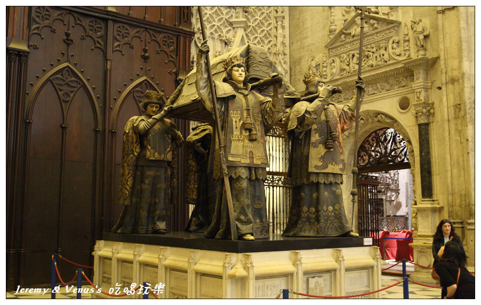 裡頭的最大重點就是這個~哥倫布之墓,抬著棺木的四個人像則象徵著西班牙四大王朝,棺木裡放的是哥倫布的骨灰,至於為什麼棺木要抬起來呢?因為哥倫布死前曾說過他不想葬在西班牙,但西班牙怎麼肯放過這位偉人?說什麼也要跟他沾上邊,遺體不能外流,又要遵守哥倫布的遺言,只好這樣了