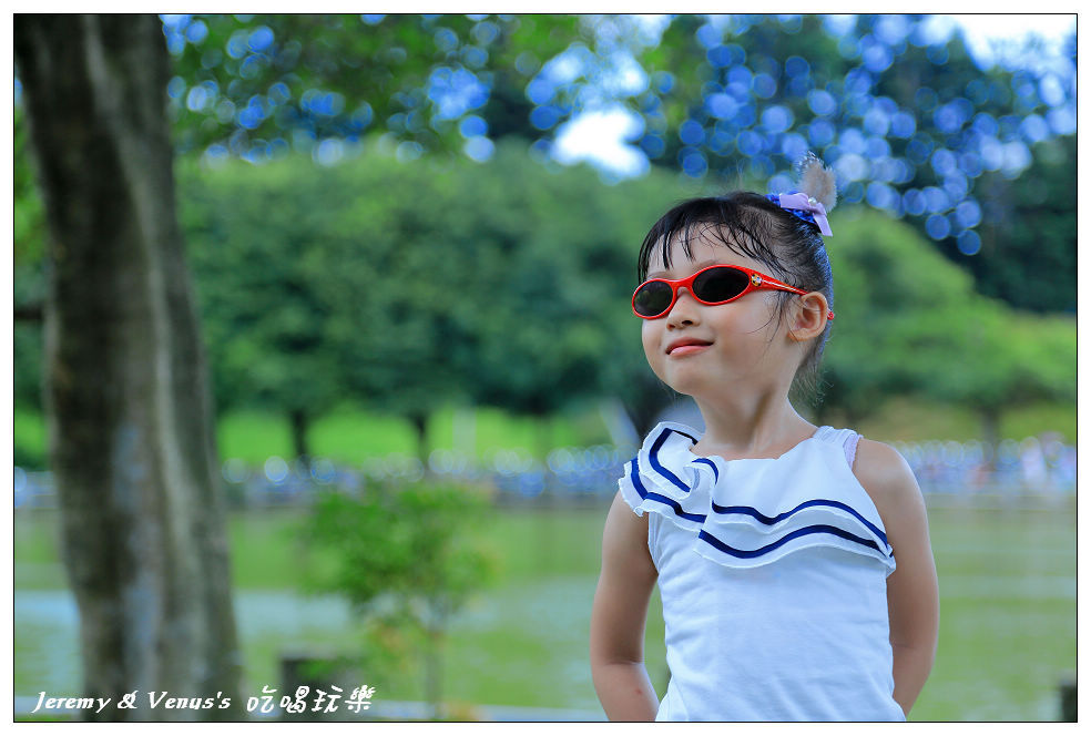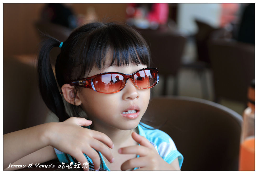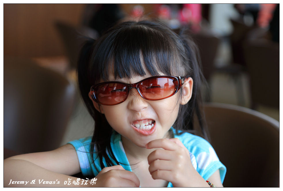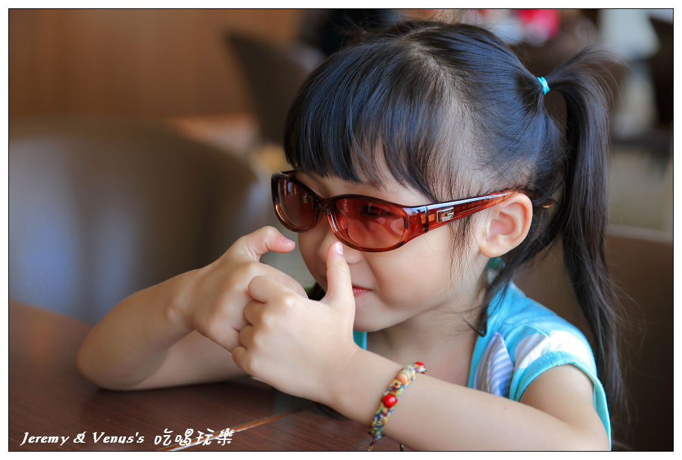 今天阿母幫她頭上戴了個裝飾,可是為什麼墨鏡一戴,卻有訐譙龍的味道?