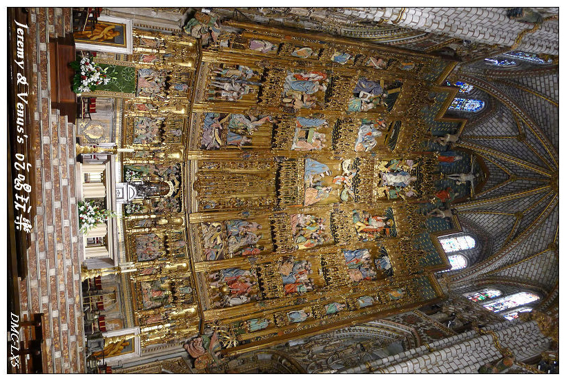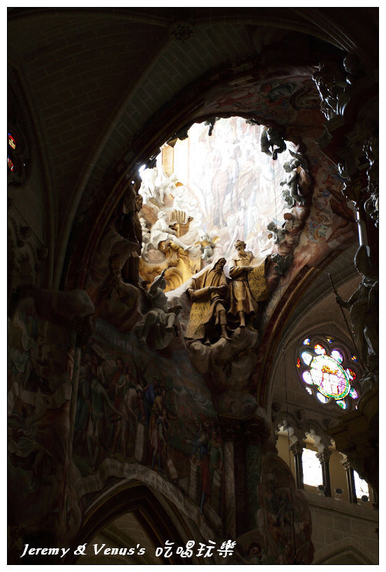 這就是托雷多大教堂,全世界三大哥德式大教堂之一,西班牙教會總部所在地,也是西班牙大主教教堂,規模為西班牙最大的,西元1227年由費南多三世下令建造,1493年才完工,蓋了266年,屬哥德式建築
