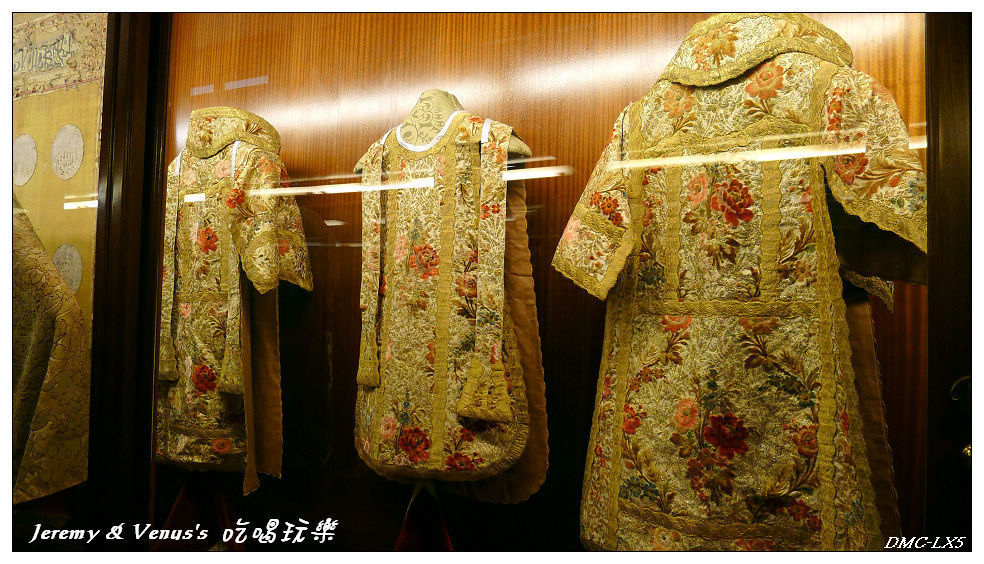 這是服裝室,展示歷代神職人員所穿的儀式服裝物品