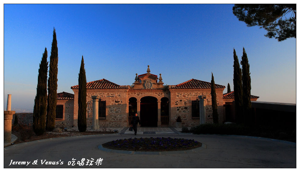 續上篇(好像隔很久?)離開馬德里後,我們搭了一個半小時的車來到下一個地點~托雷多TOLEDO,時間已經是當地晚上八點了,今晚的住宿飯店是托雷多一間很有名的五星級飯店HOTEL CIGARRAL EL BOSQUE,這間飯店建立在托雷多古城對面的一個山坡上,位於托雷多古城的最高點,可以俯瞰整個世界文化遺產~托雷多古城,飯店是經典的西班牙式建築,且帶有中古世紀的特色,不同於一般的飯店,這間只有兩層樓,建築外觀非常獨特。不過既然位於城外的山坡上,晚餐當然也只能在飯店裡吃了。