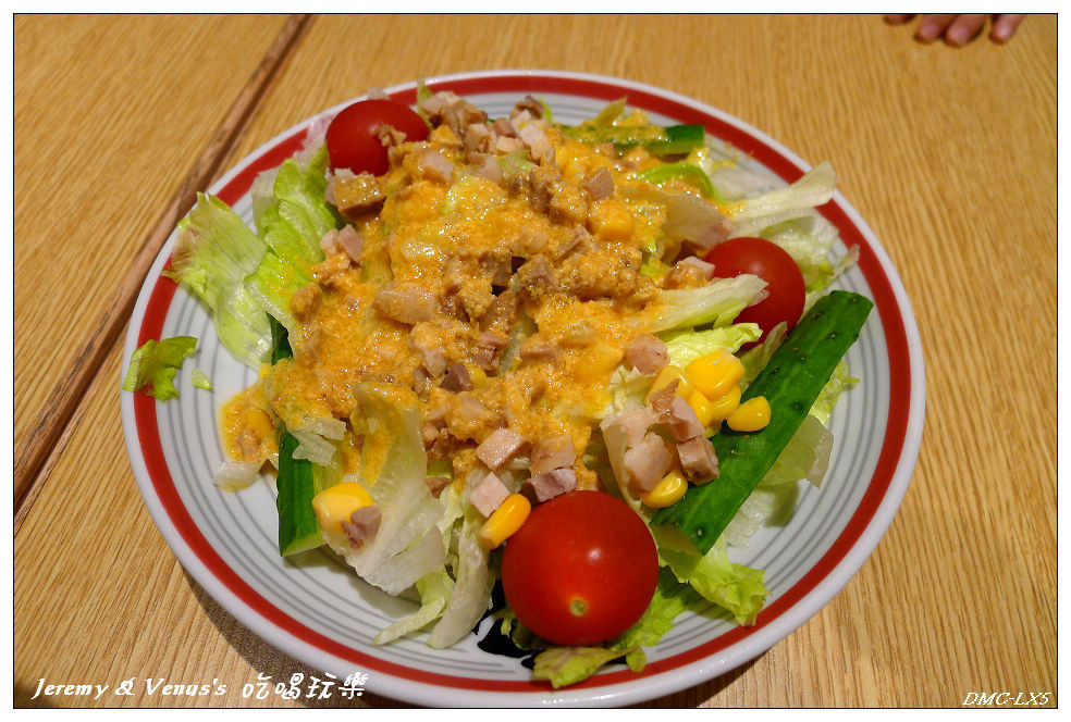 屯京沙拉,點主食+50元就有,以份量來說還可以