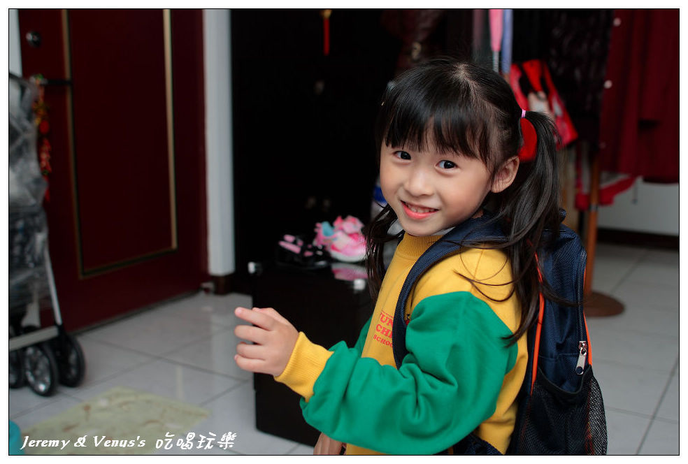 3/16,Freya就已經滿三歲四個月了,我們在3/19正式將他送到幼稚園去,其實我們並不想那麼早送他去幼稚園的,不過為了讓她有個正常的生活作息,為了能讓她每天都開開心心的玩,因此我們還是跟自己妥協決定提早送她去幼稚園,在幼稚園裡每天都可以跟其他小朋友一起玩,還有老師教她看書,蒙特梭利的教育,由生活中來學習,其實我的重點是讓她玩得開心就好,生活可以學習自理即可,學什麼不重要也不需要,學習是次要的是順便的,從遊戲中學習就好,不需要太認真,不過去第一個禮拜還很開心,第二的禮拜,新鮮感沒了,開始想念媽媽了,每天晚上就在念說我不要去幼稚園,早上帶他去,根本是十八相送淚眼汪汪哭哭啼啼的不肯跟媽媽分開,老師說這是新到幼稚園小朋友的通病,過一陣子習慣了就好了,不過Freya已經這樣一個多禮拜了,老實說,每天晚上她這樣哭鬧說不想去幼稚園,我們心裡也會不捨,不過老師說早上雖然是哭著進去,但過一下子有其他小朋友一起玩就好了,這只是還不習慣沒有媽媽的時候,尤其是親眼看著媽媽要離開她更是難過與不願,接下來這幾天改由爸爸我送他去看看,希望她能夠盡快度過這個過渡期,每天都開開心心的上學去。