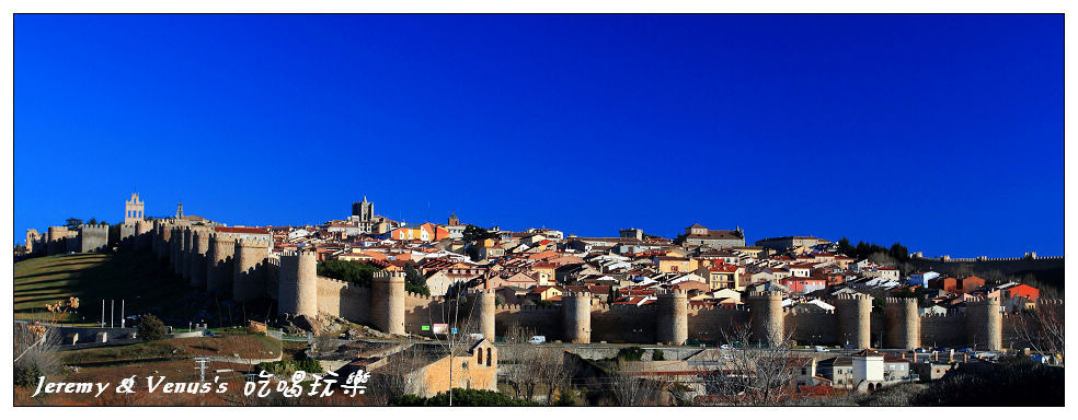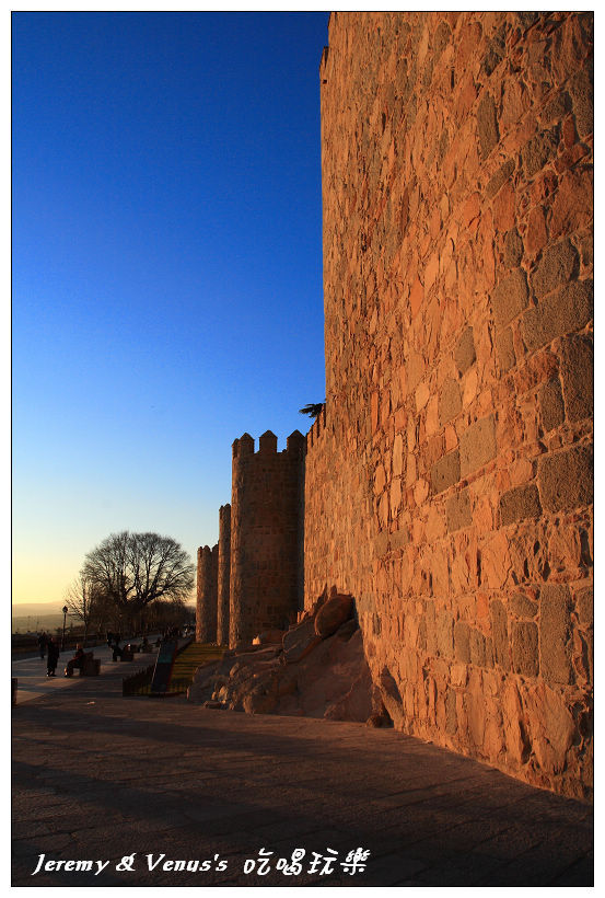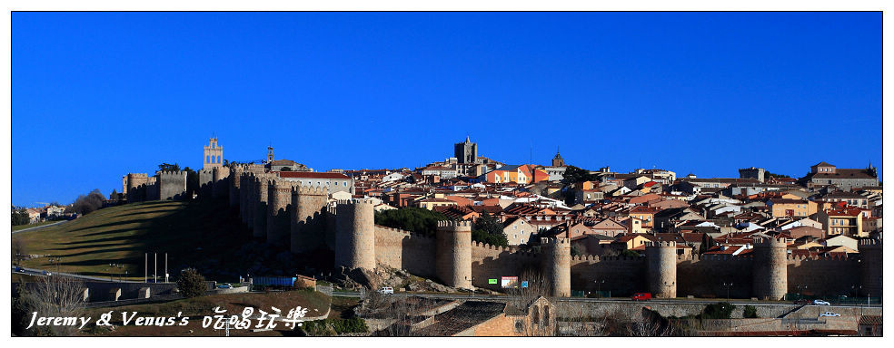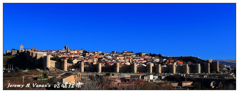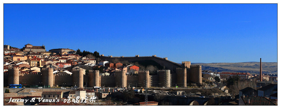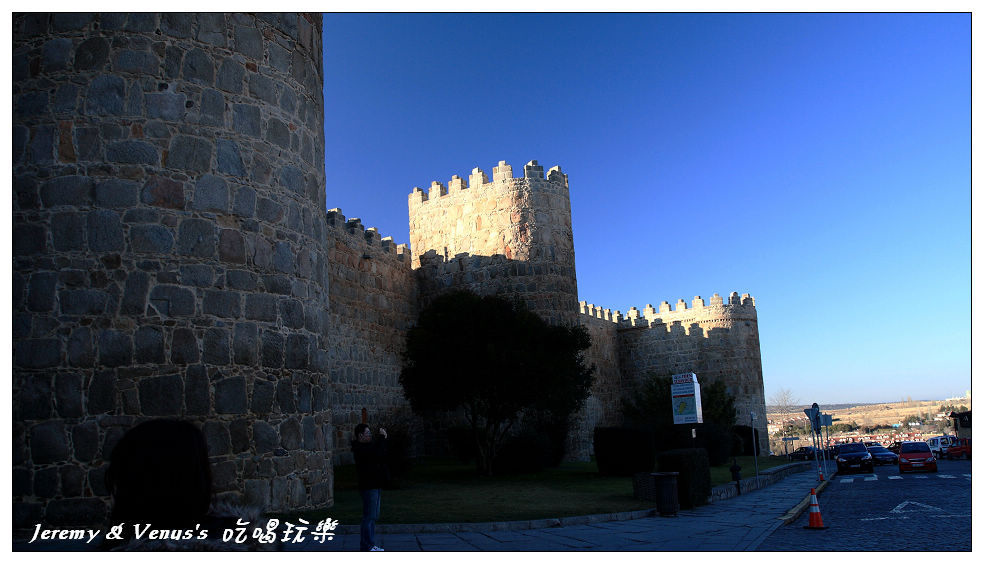 阿維拉是聖女聖特蕾莎Santa Teresa的誕生地,而城牆則是十一世紀為了抵抗回教徒入侵而興建的,有著標準中古世紀的風貌,位處海拔1100公尺高,次西班牙主要都市中最高的,連馬德里所在的西班牙中部台地,海拔也有600~750公尺,西班牙平均海拔約600公尺高,我看大洪水來也很難被淹沒吧~