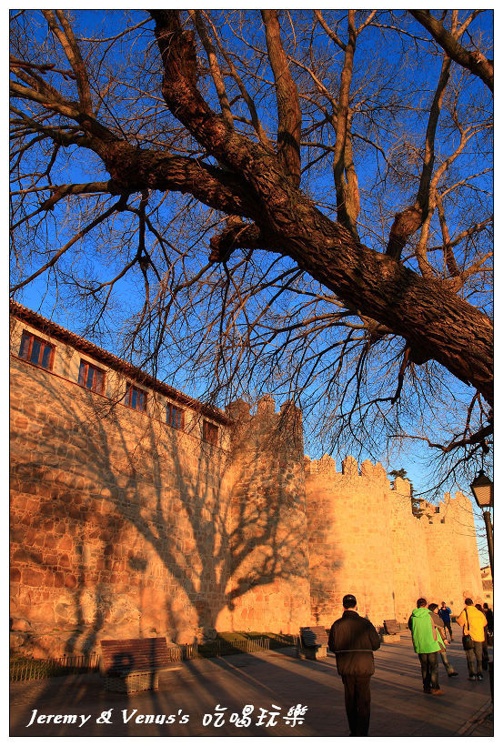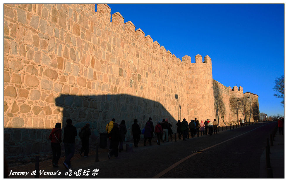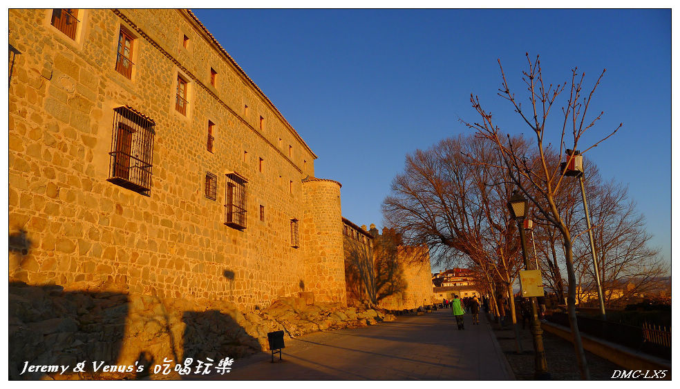 沿著城牆邊走,西班牙又稱光與影的國度,每到傍晚,光與影的對比特別明顯