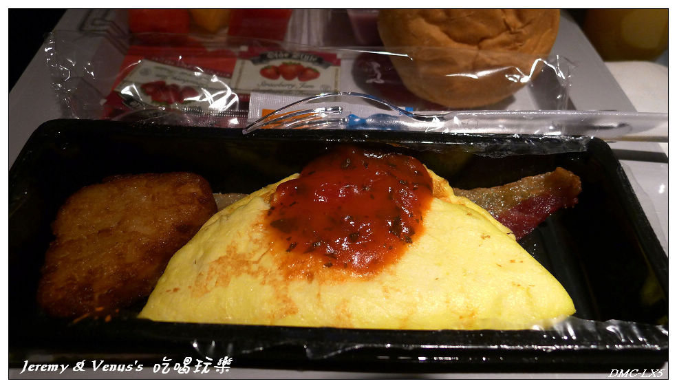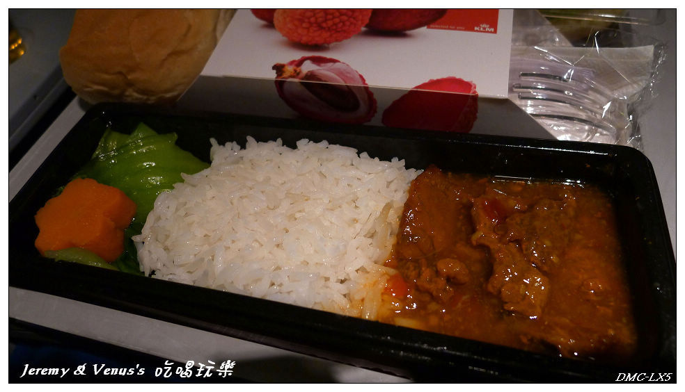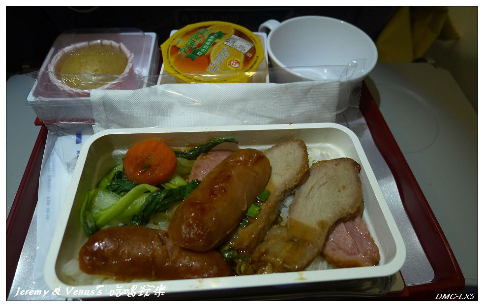 忘了是牛還是豬,那味道真是棒,總算吃到一個比較能吃的飛機餐了