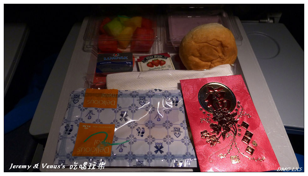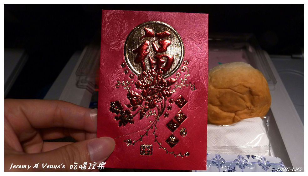 還送了一個紅包,裡頭是巧克力金幣,登機時洋妞空姐還跟我們說Happy New Year,公司應該有跟她們說今天是中國新年吧