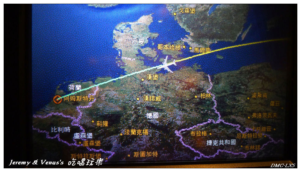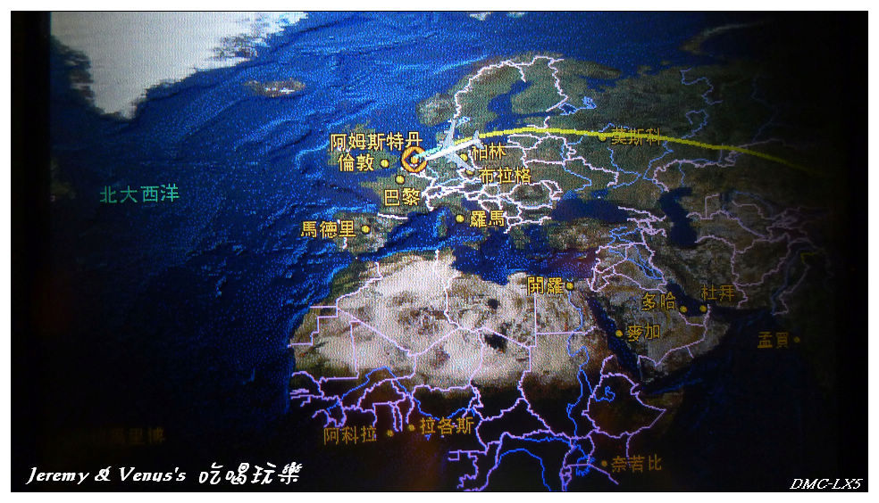12個小時的飛行時間,不一樣的是荷航選擇從北邊飛,越過中國,沿著俄羅斯飛往歐洲