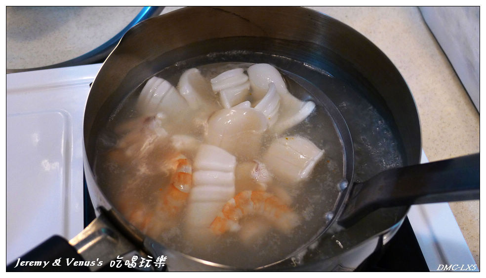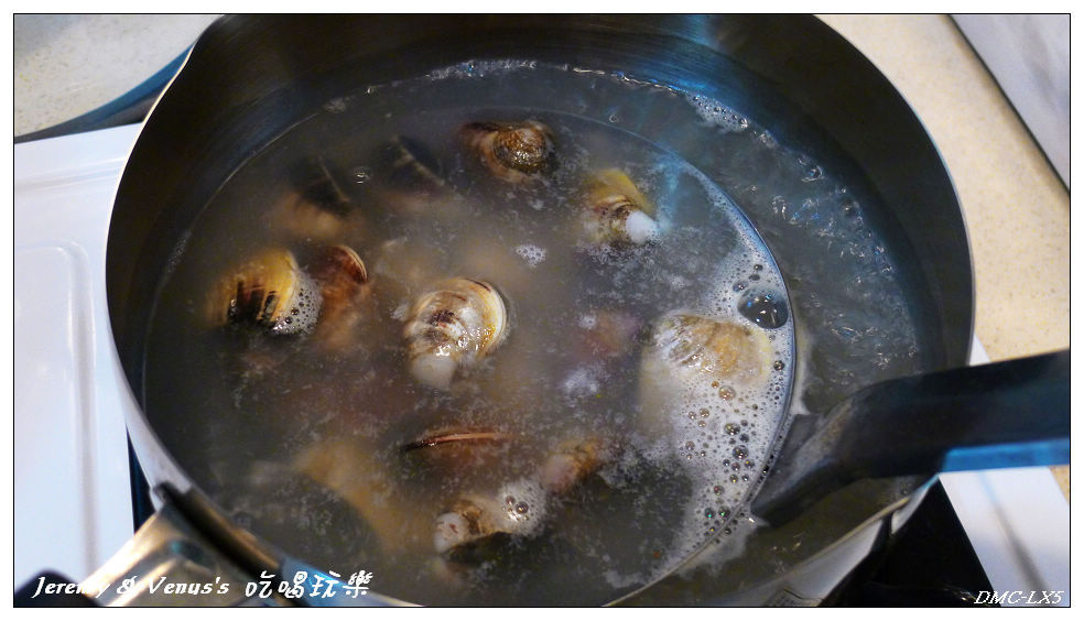 蛤蠣也下去燙一下,開了就撈起,這樣就變成海鮮高湯了
