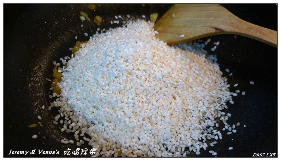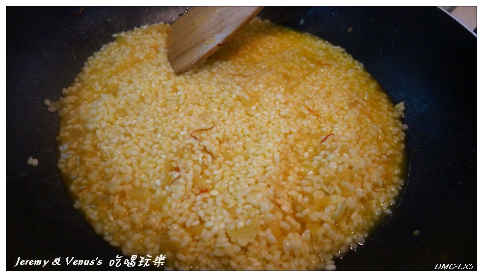 水位維持在有淹到米粒就好,不夠就加剛剛的海鮮高湯,一次加一兩匙,慢慢加,不可一次加太多水,至於要不要翻炒我是無所謂啦,反正是燉飯,就翻一翻吧,正統西班牙作法是要讓它結鍋巴的