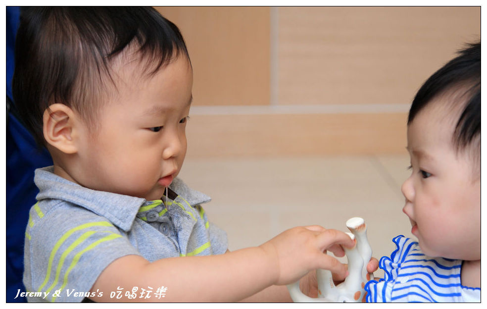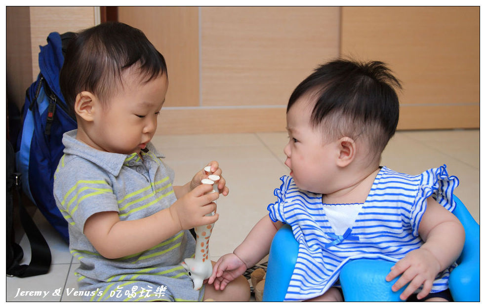 兩個小傢伙竟然會互相給對方玩具玩,還不會搶,真乖