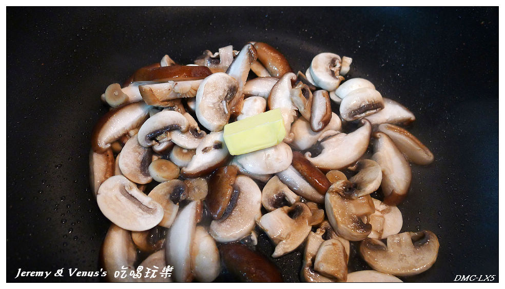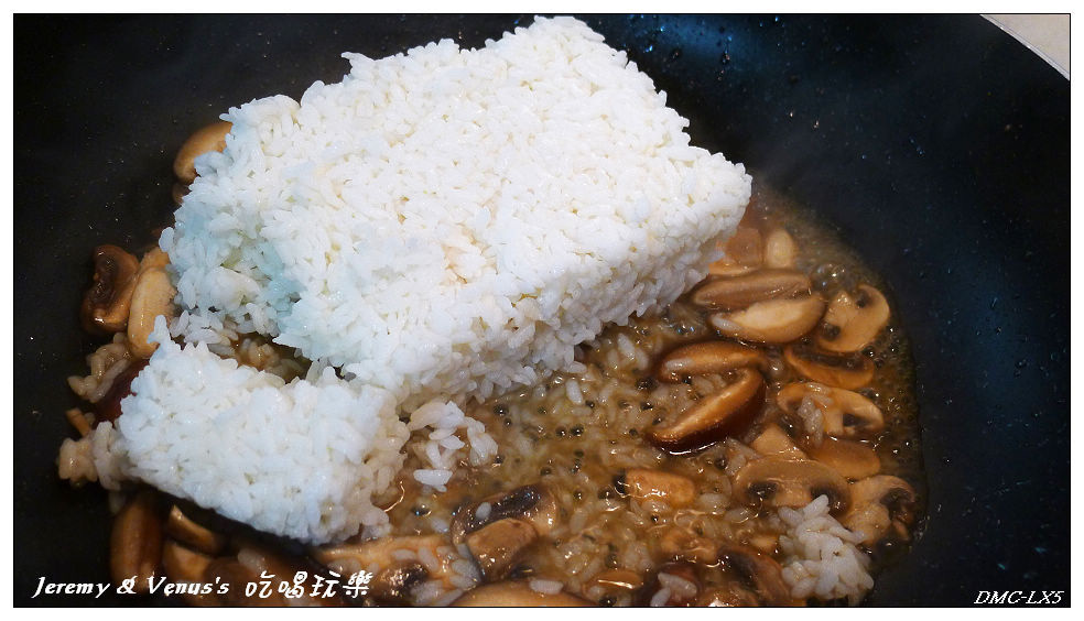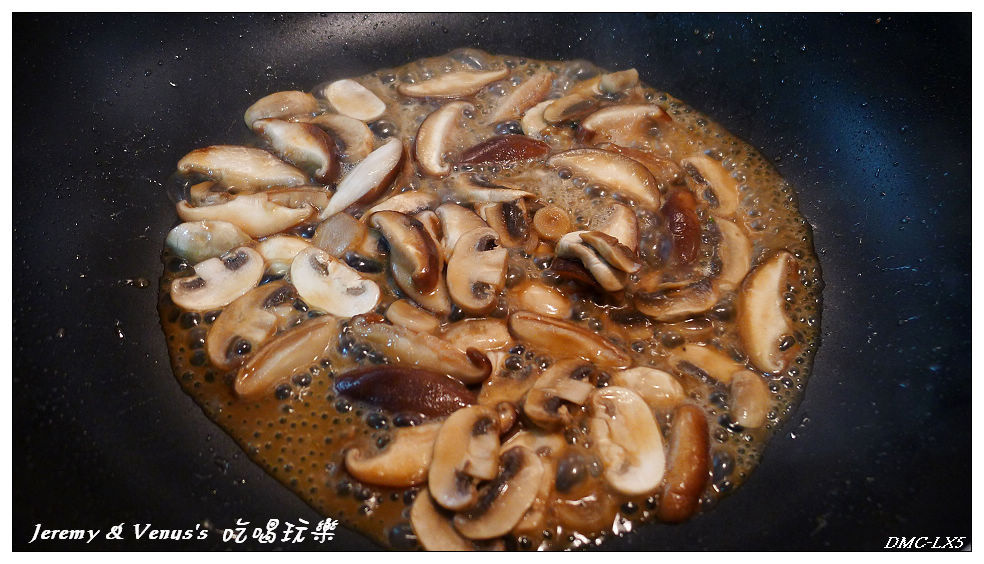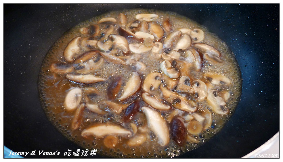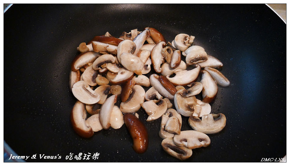 先起油鍋,將雙菇下去拌炒,香菇的味道較濃,會先聞到