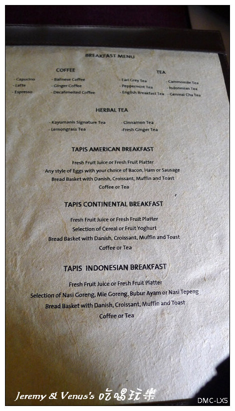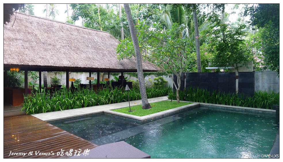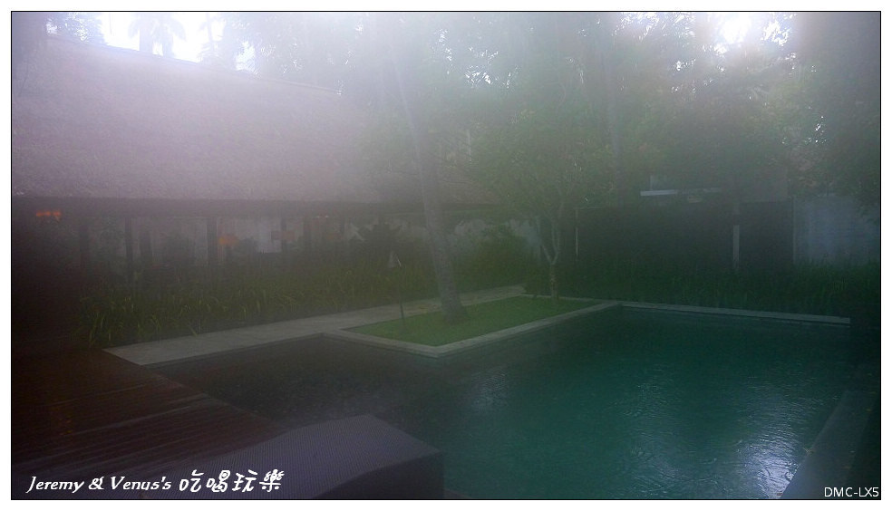 一早起來,一樣又是下著雨,來巴里島四個早晨,通通都下雨,照片上不是外頭起大霧,而是室內外溫差太大,相機鏡頭起霧,每天都這樣